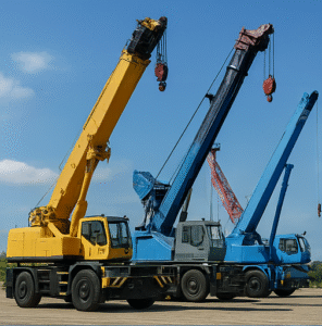 有限会社山内クレーンでは、多様な現場に対応可能なクレーンを多数保有しております。ラフタークレーン、オールテレーンクレーン、クローラークレーンなど、用途に応じた機種を取り揃えており、常に最良の機材でお客様のニーズにお応えしています。